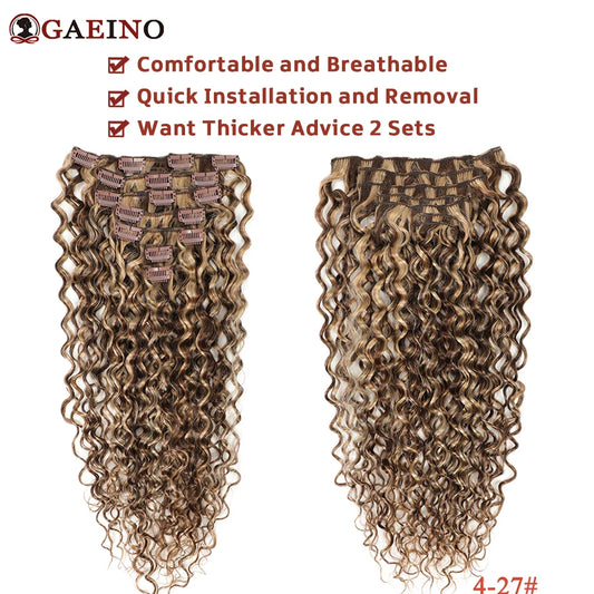 Water Wave Clip In Hair Extensions Real Human Hair 7Pcs/Set Chestnut And Bronzed Blonde Highlights Curly Clip On Hair Extensions