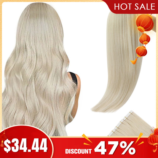 [Last 12 Months] Ugeat Tape in Hair Extensions Virgin Hair 100% Real Human Hair 10A Grade Hair Extensions Tape Ins Pure Color