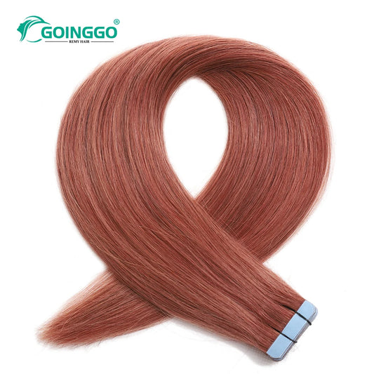Auburn Tape In Hair Extensions Human Hair Copper Skin Weft Adhesive Tape In Extensions Real Natural Hair Seamless Tape Ins 10Pcs