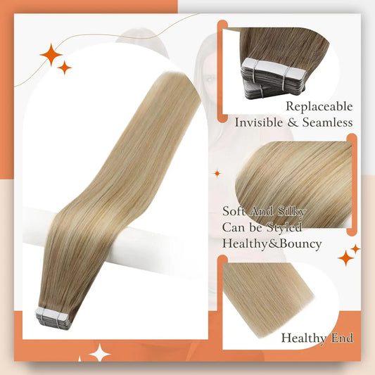 Full Shine Omber Tape in Hair Extensions Human Hair Blonde Color 100% Remy Human Hair Seamless Skin Weft Glue On Natural Hair