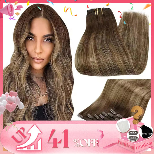 Full Shine Human Hair Extensions Clip in Hair Extensions Human Hair 7PCS 105G Double Weft Hair Extensions Human Hair For Woman