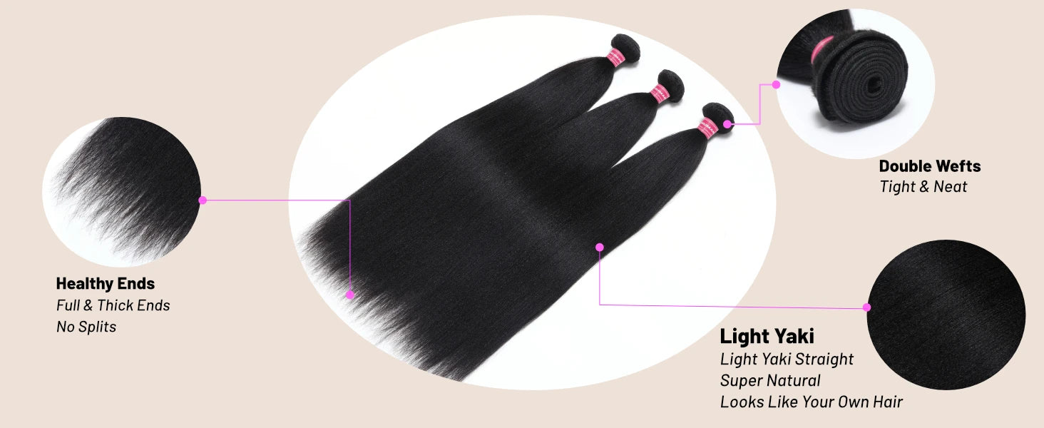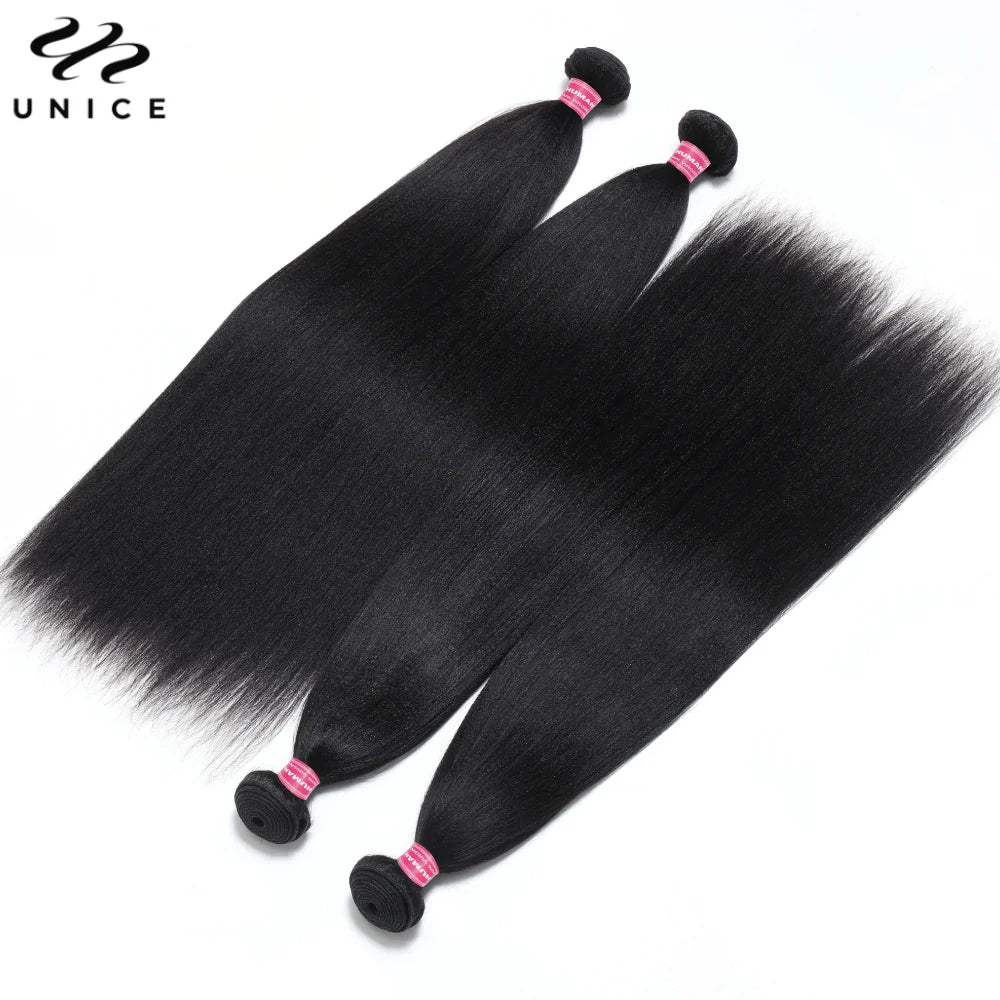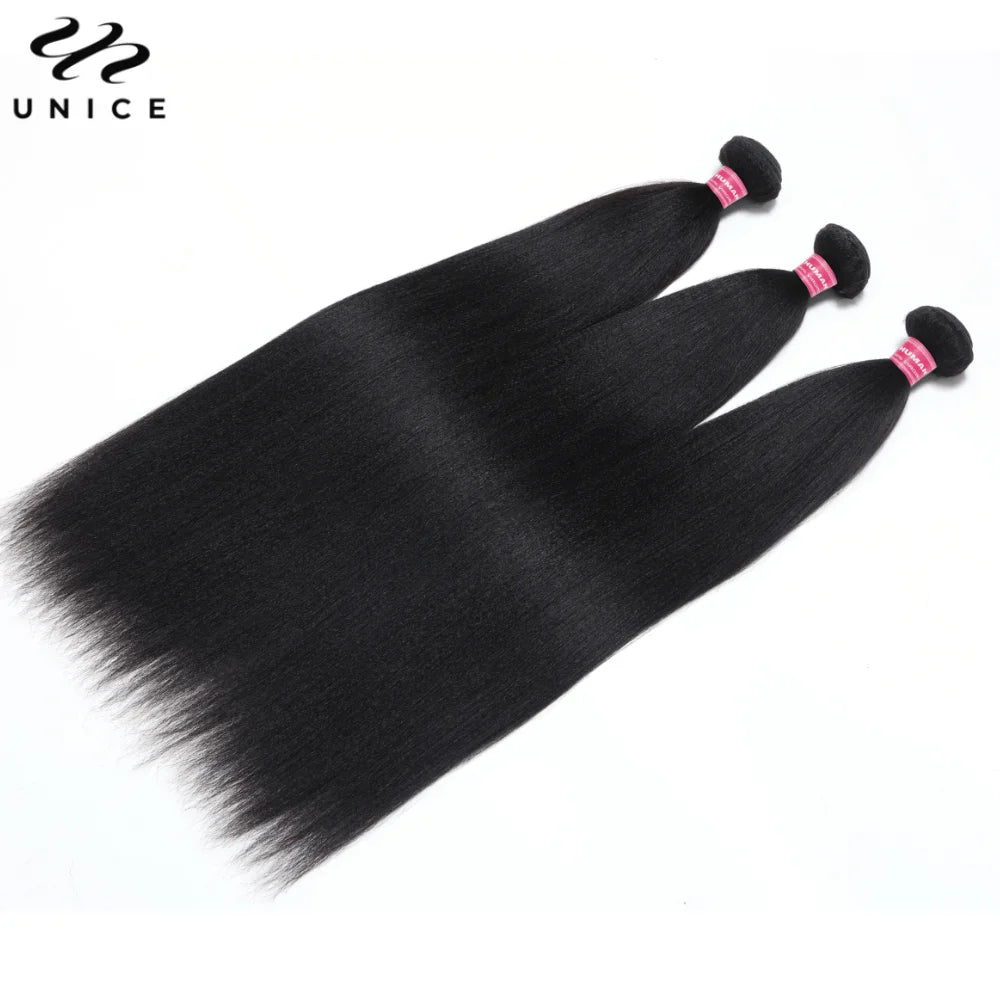 UNice Hair Yaki Straight Human Hair Bundles 100g Per Bundle 100% Human Hair Sew In Weaves 8-26 Inch Natutral Color 1/3/4 Bundles