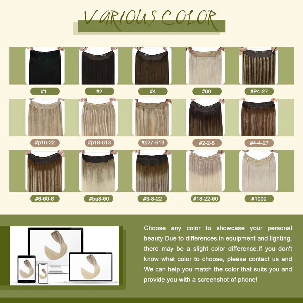 VeSunny Fish Line Human Hair Extension Wire Natural Hair OnePiece Invisible Wire Hair Weft with 2 Clips Machine Made Blonde Hair